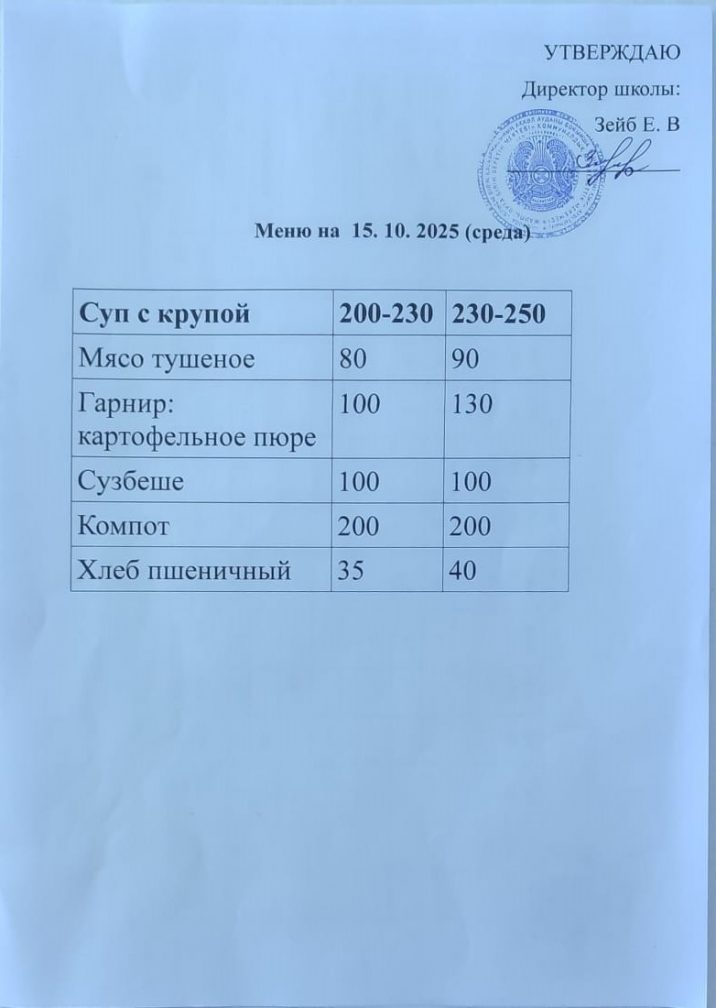 Күнтізбелік мәзір 15.10