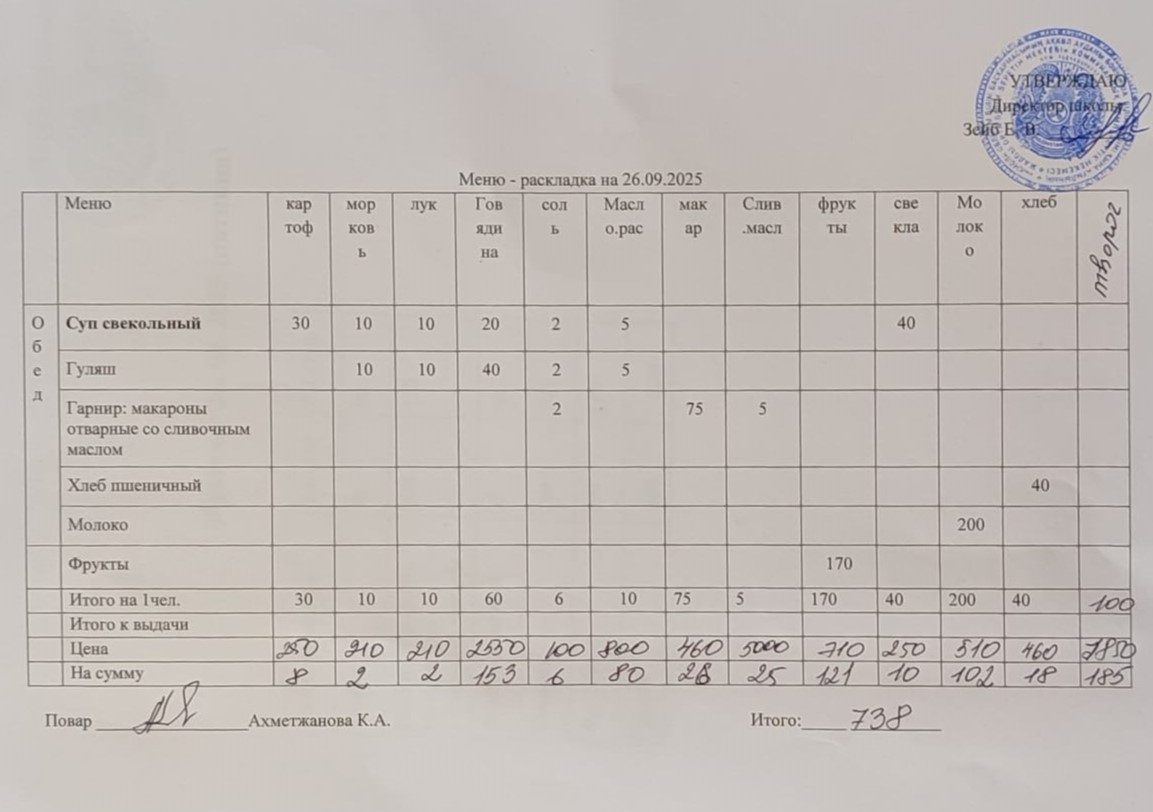 Күнтізбелік мәзір 26.09
