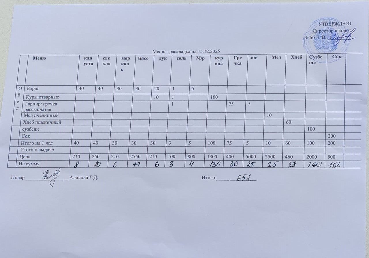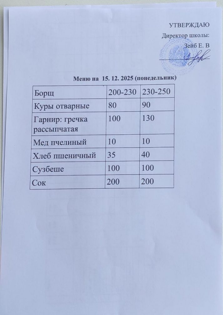 Күнтізбелік мәзір 15.12