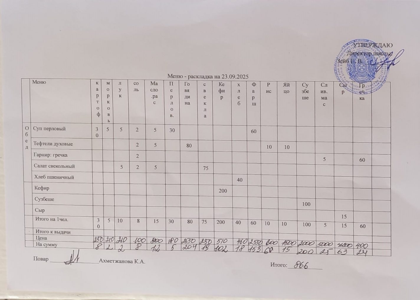 Күнтізбелік мәзір 24.09