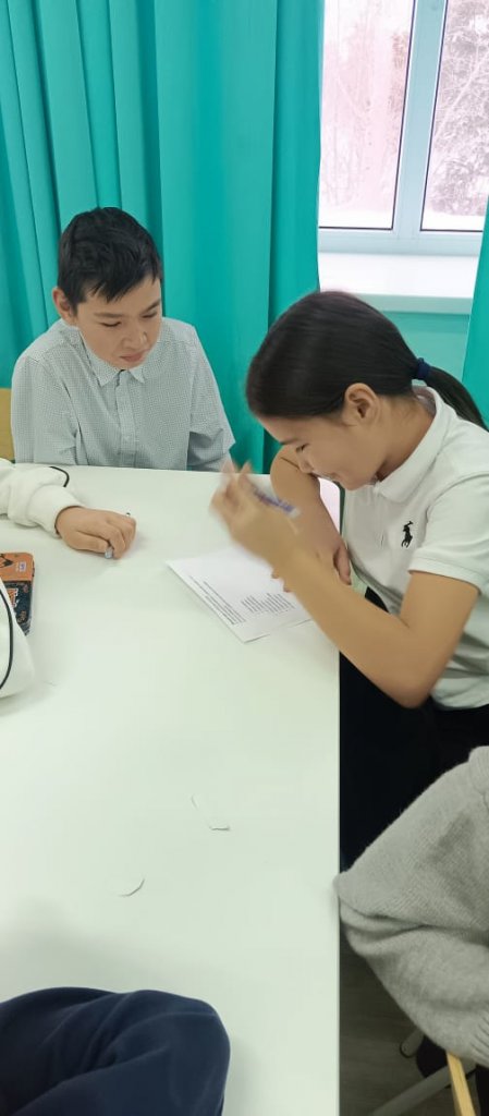 Профориентатор 7-сынып оқушыларымен «Менің айналамдағы мамандықтар» атты кәсіби бағдар беру ойынын өткізді. Іс-шара барысында оқушылар ойын түрінде мамандықтардың алуан түрлілігімен танысып, олардың күнделікті өмірдегі маңызын және табысты кәсіби қызмет үшін қажетті қасиеттерді білді.