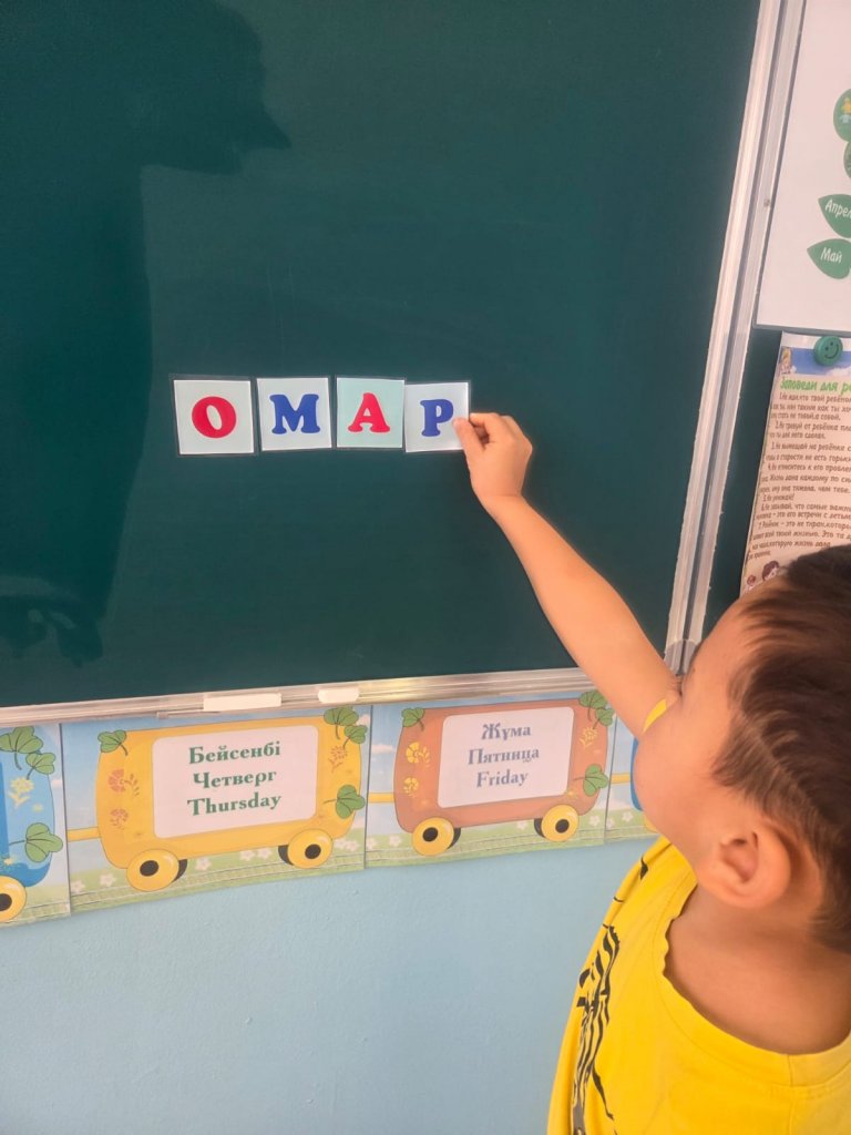 Балалардың әріптерді тану және ажырату дағдыларын қалыптастыру, берілген әріптерден сөз құрастыра білуге үйрету, сөздік қорын молайту, дыбыстық-буындық талдау жасау қабілетін дамыту. Сонымен қатар зейінін, логикалық ойлауын, сөйлеу мәдениетін және ұсақ қол моторикасын жетілдіру, қазақ тіліне қызығушылығын арттыру.