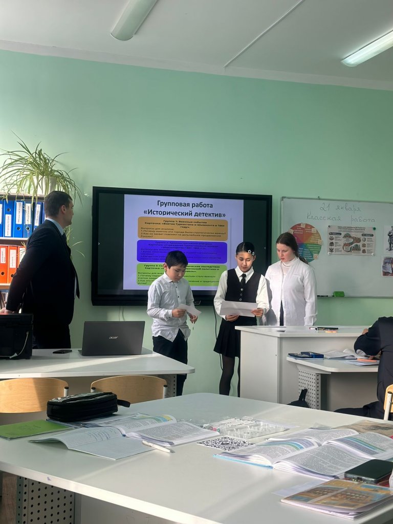 Тарихи деректерді талдауға және оқу материалымен жұмыс істеуге ерекше назар аударылды. Оқушылар талқылауға белсенді қатысып, сұрақтарға жауап беріп, өз ой-пікірлерін білдірді. Сабақ танымдық әрі жұмысқа бағытталған атмосферада өтті. Ашық сабақты тарих пәнінің мұғалімі Зейб Ю.В. өткізді.