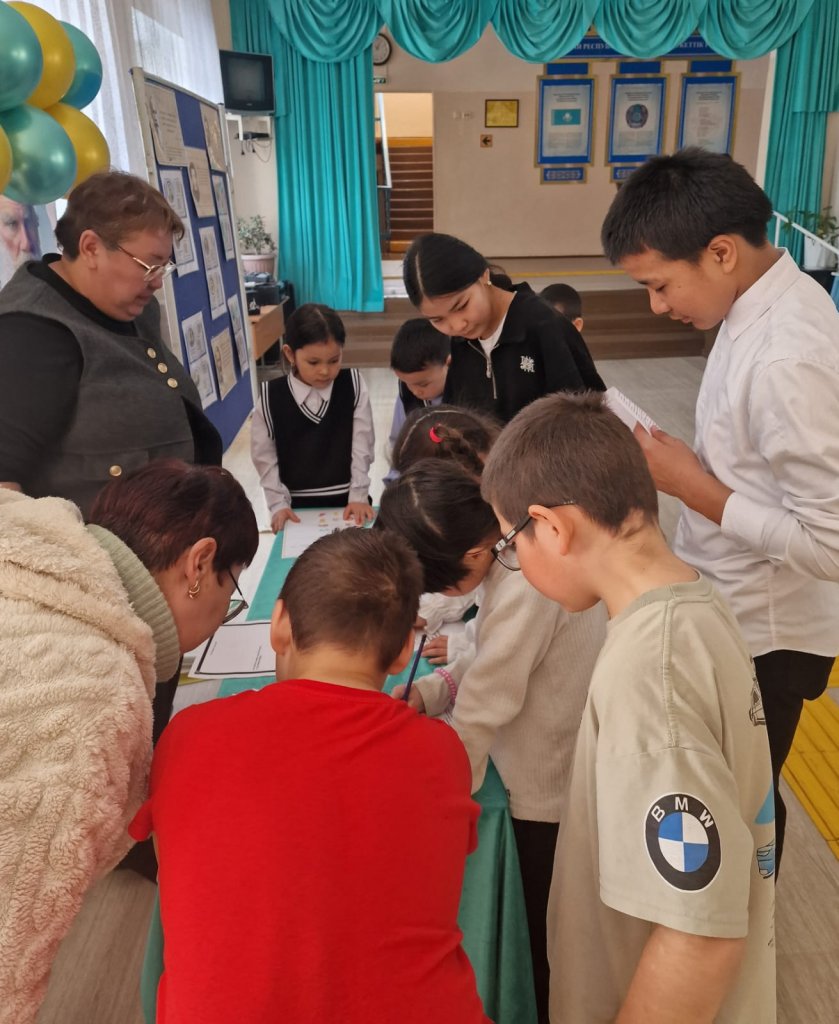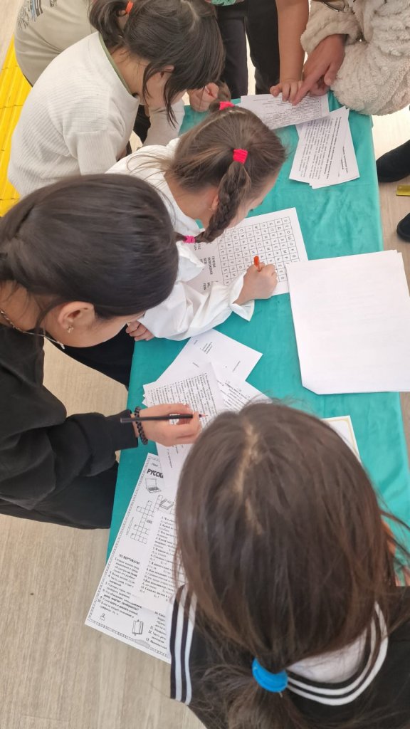 Бүгін мектебімізде орыс тілі онкүндігі аясында «Қызықты үзіліс» шарасы өтті. Оқушылар бұл шараға белсене қатысты: күрделі ребустардың шешімін тауып, шарадаларды шешті және карточкадағы шығармашылық тапсырмаларды орындады.
