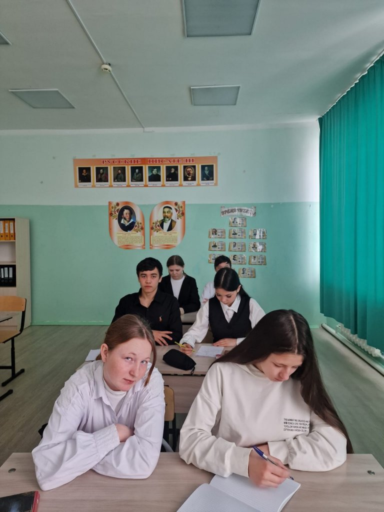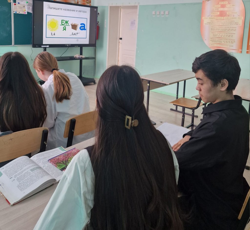 «Бүгін 9 «Б» сыныбында орыс тілі онкүндігі аясында «Орыс әдебиетінің алтын ғасыры» атты викторина өтті. Оқушылар тамаша білім деңгейін көрсетті: сұрақтарға белсене жауап беріп, жауап нұсқалары төңірегінде пікірталас жүргізді және 8-сыныпта оқыған шығармаларын еске түсірді».